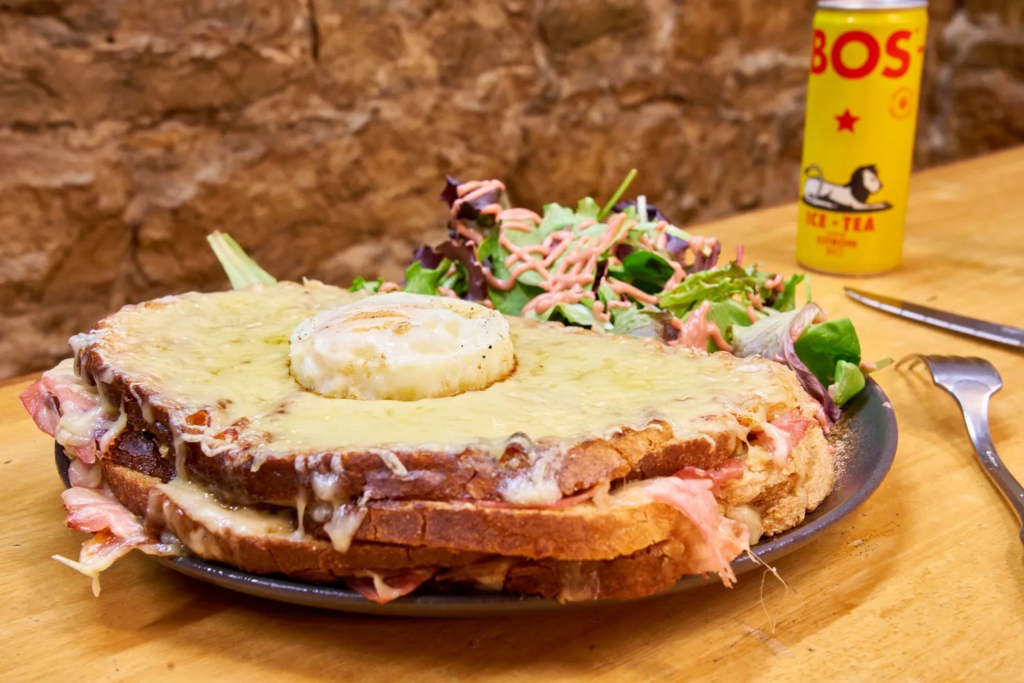 クロックムッシュは、フランスで有名な軽食で、パン屋、スナック、ブラッスリー、カフェ、レストランなど、どこでも売られています。CrockNrollの専門料理はクロックムッシュで、ここは最高の時間を過ごせる場所!サイズはかなり大きく(通常サイズでも私には十分)、デザート用の甘いクロックムッシュもあります。リヨンには2店舗ありますよ。